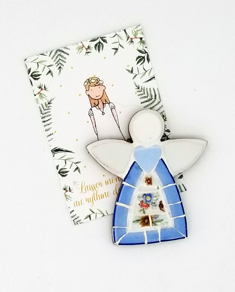 Apportez une touche céleste et artisanale à votre intérieur avec notre ange en mosaïque, réalisé à partir de vaisselle recyclée. Chaque pièce est façonnée à la main, créant une décoration unique et écologique. Parfait pour orner un mur, une étagère ou comme cadeau spirituel, cet ange en mosaïque allie artisanat, durabilité et esthétique.